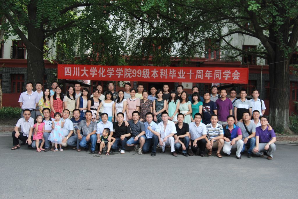 2013年8月10日,化学学院本科九九级同窗校友在母校重聚,愉快纪念自己毕业十周年的日子。多年不见,各位同学之间相谈甚欢,大家一边回忆当年在母校化学学院读书时的美好时光,一边交流各自目前的工作生活。学院老领导和在校现任领导及老师出席了午宴,与昔日的学生们一起愉快的交谈,并提出了殷切的期望和美好的祝愿,同时欢迎大家以后常回母校和学院走走看看。聚会在愉快的气氛中圆满结束,分别时大家依依不舍,并提议今后尽量多的提供这样一个供大家重聚和广泛交流的机会和平台,同时对自己的母校和学院送上了最美好和诚挚的祝福。