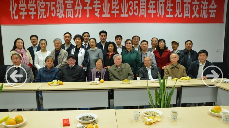 四川大学化学学院75级高分子专业共有毕业生20名,多年来在科学研究、产业化建设和社会管理等多项工作中取得突出成绩,捷报频传。此次聚会在国内的17名同学都从全国四面八方赶来,看着曾经的老照片,聊着过去美好的日子,洋溢着幸福的微笑。此次聚会是75级高分子专业的同学第一次全班聚会,聚会在愉快的气氛中圆满结束,分别时大家依依不舍,同时对自己的母校和学院送上了最美好和诚挚的祝福。