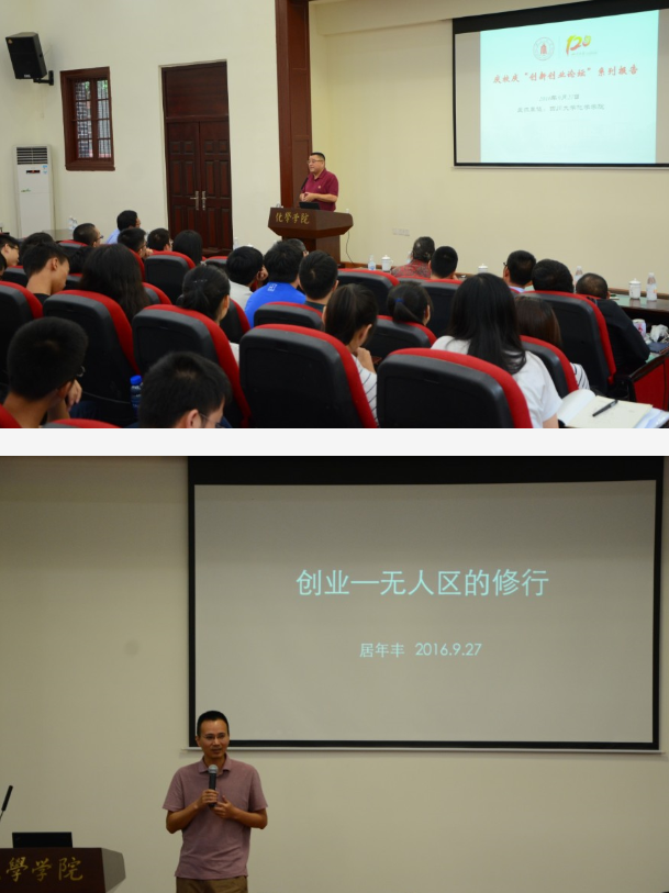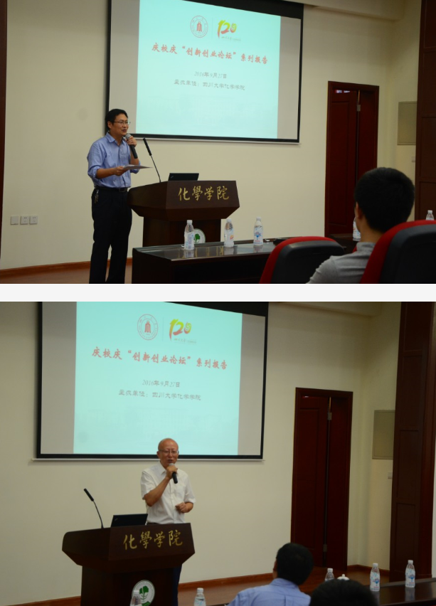 9月27日下午,作为四川大学化学学院庆祝120周年校庆的又一重要活动 “化学学院创新创业论坛”在化学馆321报告厅举行。此次论坛邀请到我们学院四位杰出校友来分享他们的创新创业经历,并与学子们进行深入的交流。