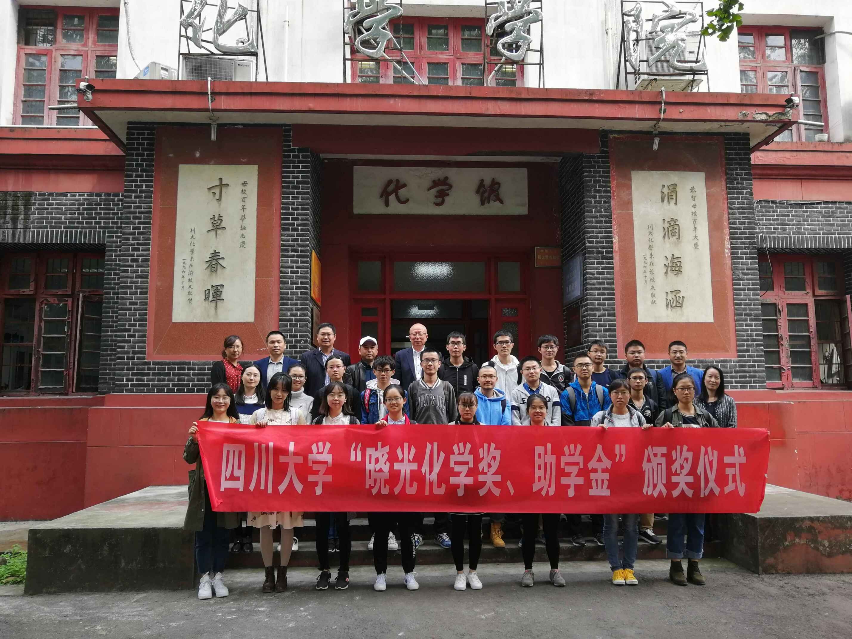 10月16日上午,2017-2018年度“晓光化学奖、助学金”颁奖仪式在化学馆122会议室隆重举行。化学学院79级校友、青岛三力化学工业有限公司董事长总经理王晓光先生,四川大学化学学院教授委员会主任陈华教授,化学学院党委书记王智猛老师,副书记谢均老师,化学学院副院长郑成斌教授以及学生工作办公室全体辅导老师出席了此次颁奖仪式。此次颁奖典礼由党委副书记谢均老师主持。