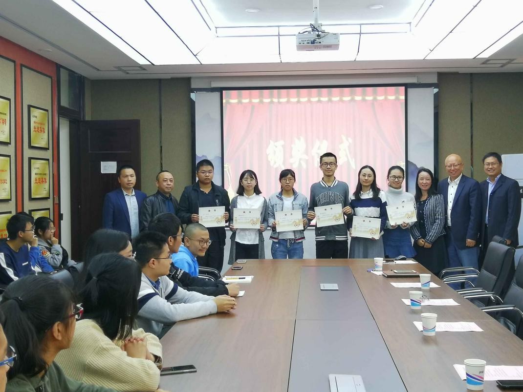 学院党委书记王智猛老师致辞,感谢晓光师兄一直以来对母校的支持和帮助。陈华教授简要介绍了晓光奖、助学金的捐赠情况,介绍了校企合作情况。