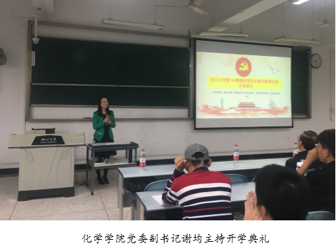 2018年11月3日上午9:30,四川大学化学学院(外国语、物理、生命、数学学院)党校第145期发展对象培训班开学典礼在江安校区综合楼C207举行。四川大学党校兼职教授汪朝清、化学学院党委副书记谢均、各学院指导老师以及全体263名学员参加了此次开学典礼。开学典礼由化学学院党委副书记谢均主持。