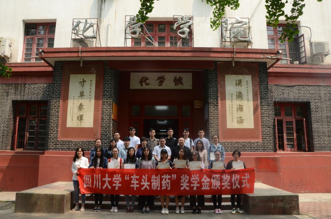 2018年4月11日上午10:30,四川大学2018年“车头制药”奖学金颁奖仪式在四川大学化学馆122会议室隆重举行。浙江车头制药人力资源总监徐建江、浙江八巨药业人行副总经理蒋志永、化工学院党委副书记姜利寒、药学院辅导员陆璐、化学学院党委副书记谢均老师及学生工作办公室全体老师参加了本次颁奖仪式。