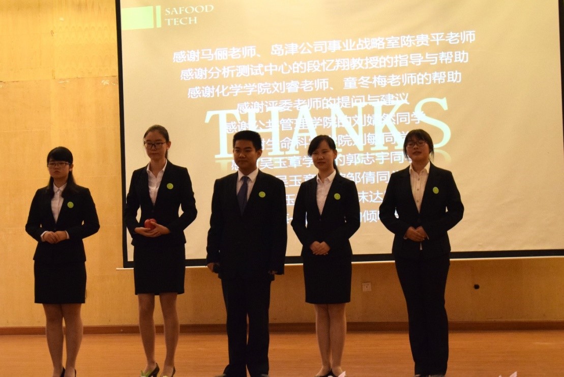 此次比赛是模仿公司里的产品论证会,参赛队伍分别是:遇见M.E.T团队,夕阳红团队,SAFOOD TECH团队和喵喵喵团队。第一阶段,各队伍阐述产品的概念产生、市场调查和产品理念、产品原理。遇见M.E.T团队着眼于环境问题,为我们带来了模块化废气处理系统;夕阳红团队则将目光聚焦在老人身上,研发了一款健康医疗手环;SAFOOD TECH团队关注食品安全问题,提出了便携型农药残留检测仪的概念;喵喵喵团队关注点则是我们的衣着问题,研发出新型保暖内衣“奇迹暖暖”。之后是精彩的拉票环节,各个团队新颖出奇的拉票表演节目精彩绝伦,比赛现场掌声热烈。经过评委老师们的投票,最终遇见M.E.T团队和SAFOOD TECH团队进入决赛,开始冠军的角逐。