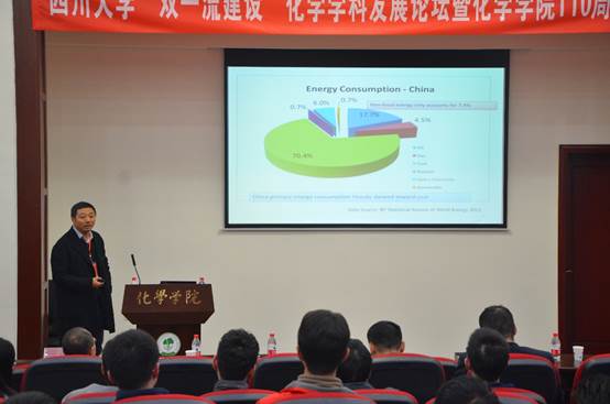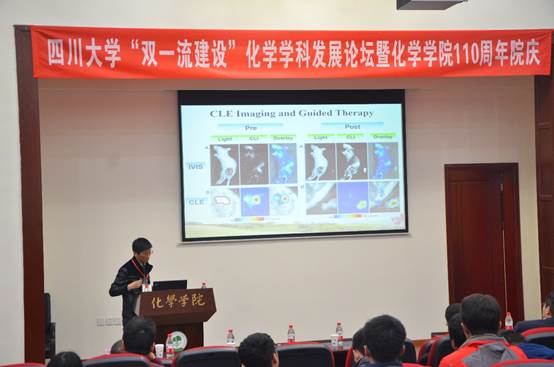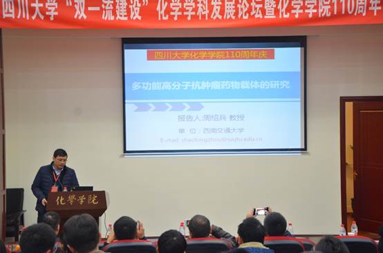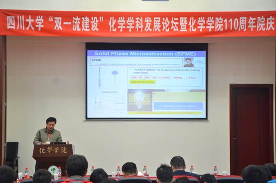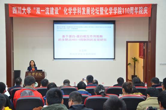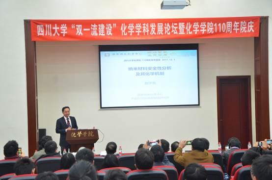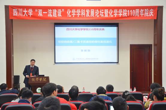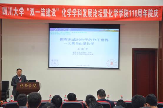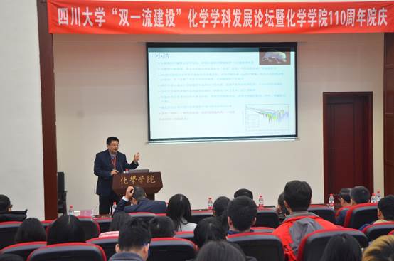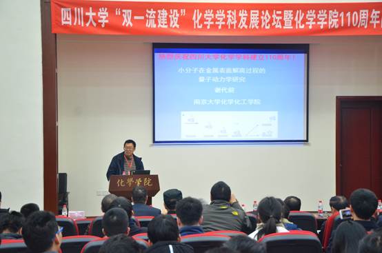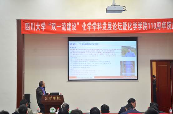2017年12月01日,四川大学“双一流建设”化学学科发展论坛暨化学学院110周年院庆系列活动之学术讲座活动在四川大学望江校区化学馆321成功举办。本次活动邀请了川大化院的十六位学界杰出校友和学术带头人:院外有陈芬儿院士、赵宇亮院士、谢代前教授、汪小琳研究员、叶国安研究员、孟鸿教授、龙亚秋研究员、欧阳钢锋教授、高毅勤教授、程震教授、马丁研究员、周绍兵教授、王新平教授和张新刚研究员等,院内有冯小明院士和王玉忠院士。化学学院游劲松院长为此次学术报告致辞,学院近千名师生参加了本次活动。