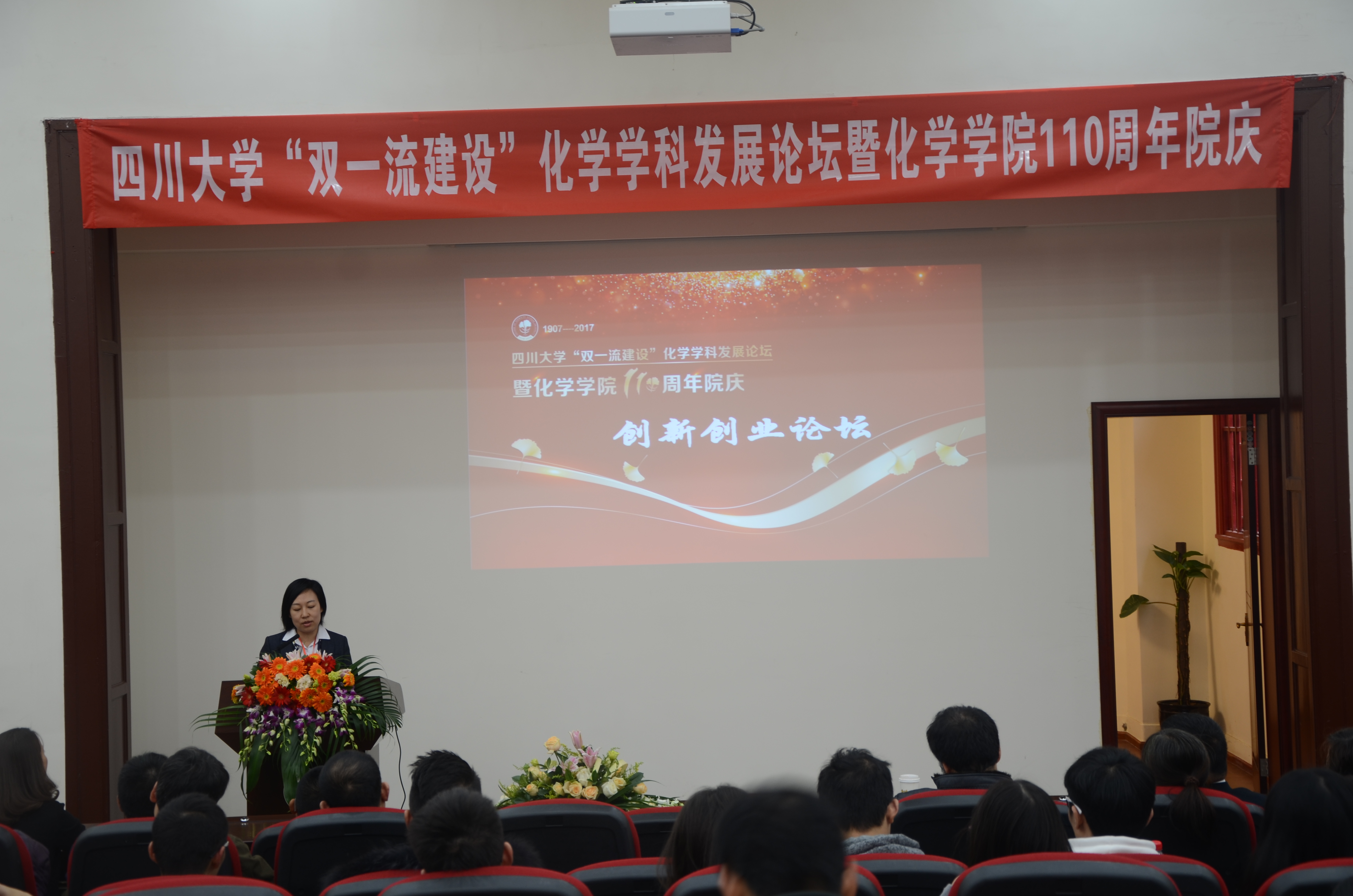 2017年12月2日下午14:30,作为四川大学“双一流建设”化学学科发展论坛暨化学学院110周年院庆系列活动之一的创新创业论坛,在化学馆321报告厅成功举行。四川大学教务处创新创业工作领导小组办公室专职副主任吴迪老师,部分返校校友代表,学生代表,教师代表参加了本次论坛,由化学学院党委副书记谢均老师主持。