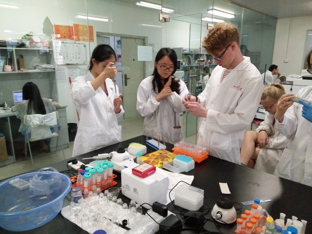 2017年7月11日——2017年7月13日。来自英国约克大学的7名留学生与化学学院23名交流营学生,分为5组,在郑成斌、罗明亮、张立春、房川琳等老师的指导下,进行了为期3天的水质检测实验。