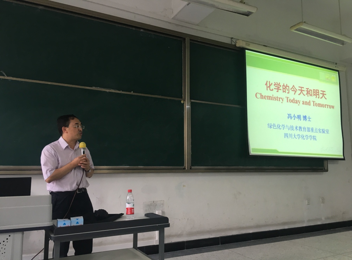 2017年9月12日下午16:30,四川大学化学学院2017级化学专业教育讲座在江安校区综合楼C204顺利举行。中国科学院院士冯小明老师为新生们带来了主题为“化学的今天与明天”的精彩讲座,化学学院党委副书记谢均老师、2017级辅导员杨琴老师参加了本次报告会。报告会由谢均老师主持。