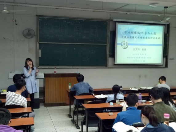 2017年4月7日晚上,四川大学化学学院化学前沿系列(七):不对称催化:科学与机遇,在江安校区第一教学楼B座307成功举办。本次主讲嘉宾为化学学院王天利教授,她生动有趣的为我们讲解了过渡金属催化不对称氢化的研究进展。