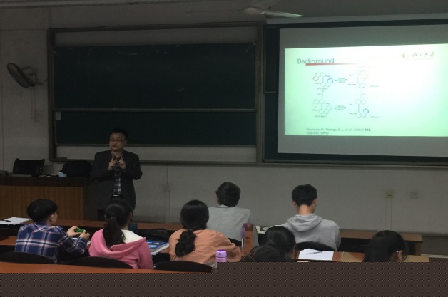 2017年4月7日晚上,四川大学化学学院化学前沿系列(五):超分子光化学简介,在江安校区第一教学楼B座307成功举办。本次主讲嘉宾为化学学院杨成教授,他生动有趣的为我们讲解了目前的分子机器。