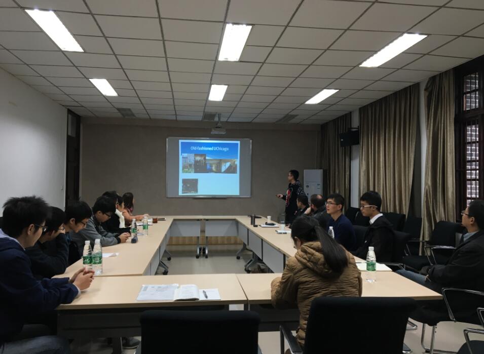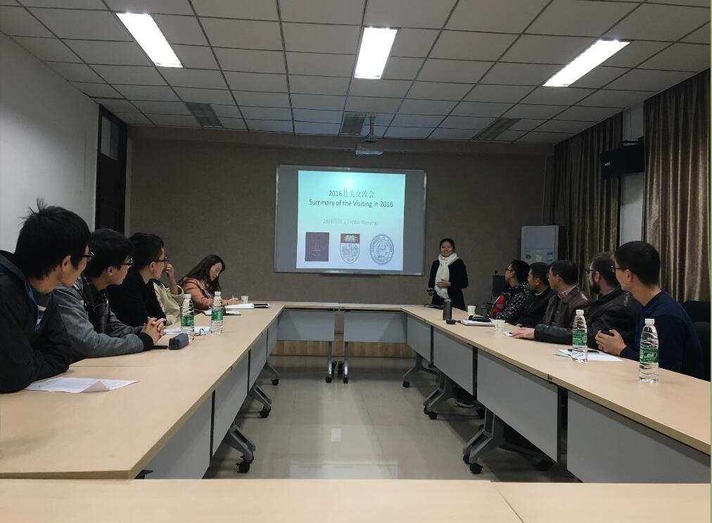 2016年11月11日上午10:30,化学学院2013级、2014级共九名拔尖班学生在化学馆122会议室对此前赴美国伊利诺伊大学香槟分校(University of Illinois at Urbana-Champaign, UIUC)、西北大学(Northwestern University )和芝加哥大学(The University of Chicago)访学交流进行总结汇报。余孝其院长主持了汇报会,王智猛书记、李梦龙副院长、谢均副书记、郑成斌教授、Jason Chruma教授、教学科研科科长姜林老师,外事秘书马晓爽老师参加了会议。