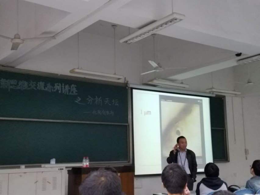 2016年10月11日下午,四川大学化学学院创新思维交流系列(三):分析天坛,在江安校区综合楼C107成功举办。本次主讲嘉宾为四川大学分析测试中心吴鹏老师,全体2016级本科同学参加了本次讲座。