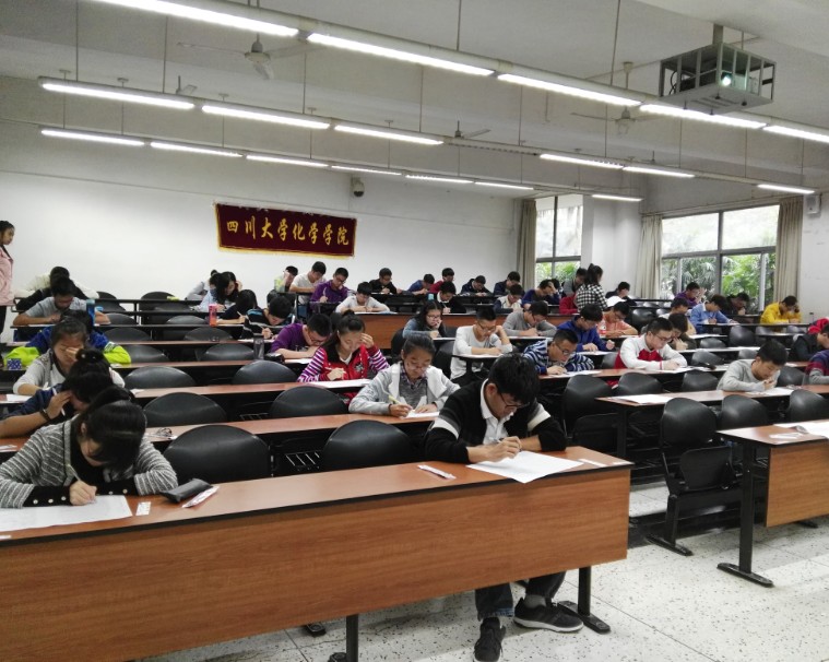 2016年10月22日,由四川大学教务处、共青团四川大学委员会、四川大学化学学院主办的第三届四川大学“宏坤·银杏杯”化学知识竞赛初赛——笔试在江安校区第一教学楼B座成功举办。本次竞赛初赛共设11个考场,共有1000余名来自不同学院的2016级本科同学参加。