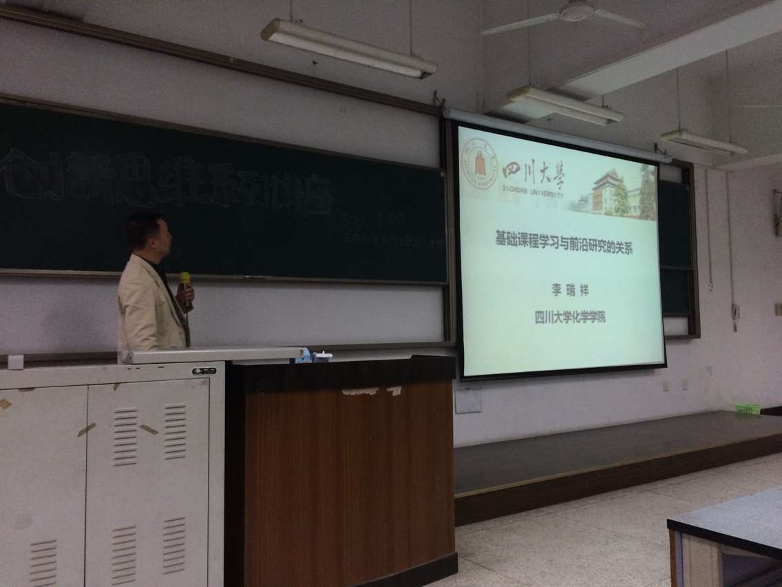 2016年10月25日下午16:45,在四川大学江安校区综合楼c座107教室,四川大学化学学院李瑞祥教授为2016级的同学们带来了又一期内容丰富又有趣的创新思维与交流系列讲座(五):基础和前沿研究。