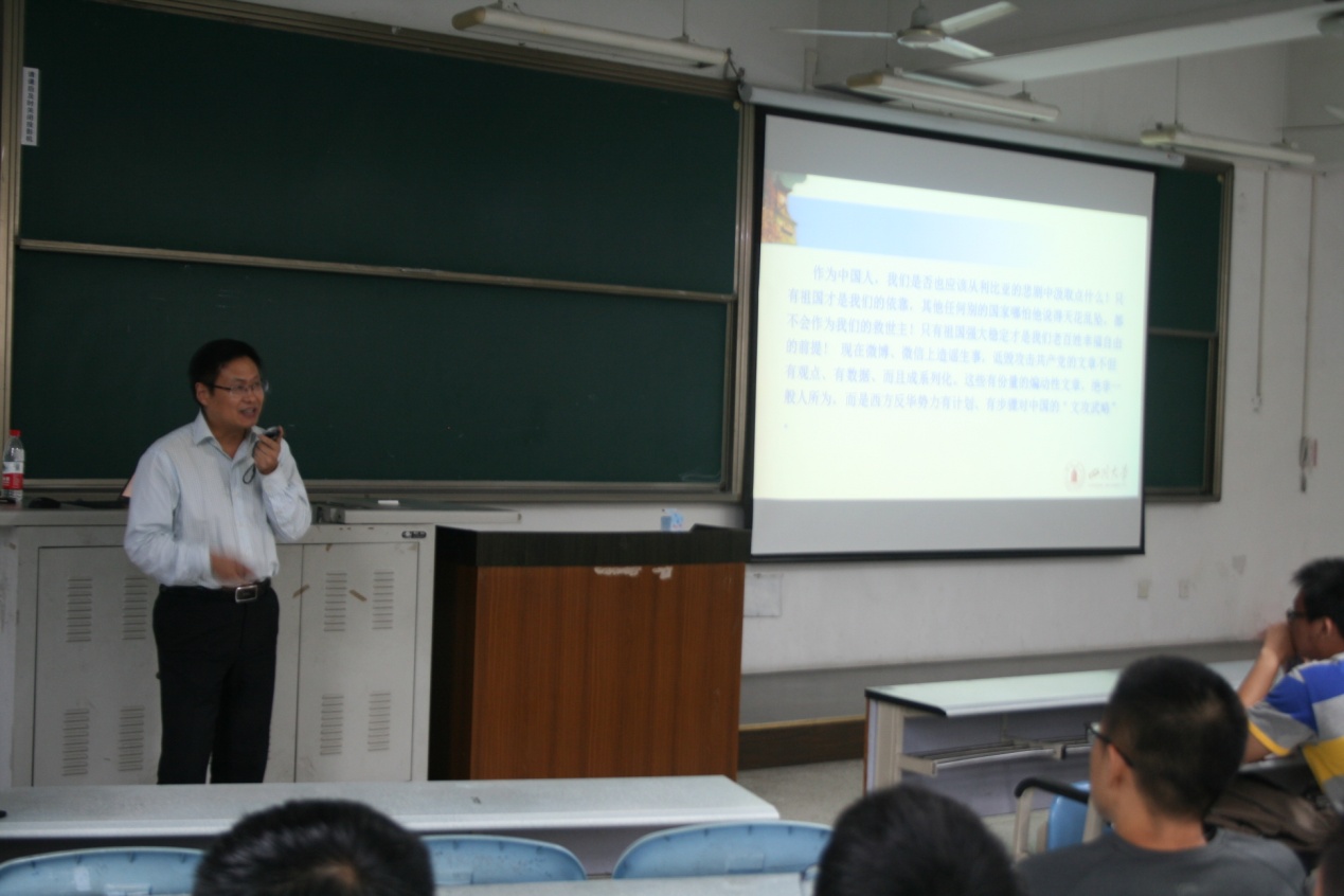 2016年9月18日15:00,四川大学化学学院2016级入党知识宣讲会在江安校区综合楼C座107教室成功举行。本次宣讲会的主讲老师是化学学院党委书记王智猛老师。到场嘉宾还有2016级辅导员肖波老师。化学学院2016级全体新生参加了本次宣讲会。
