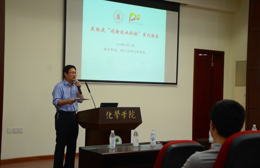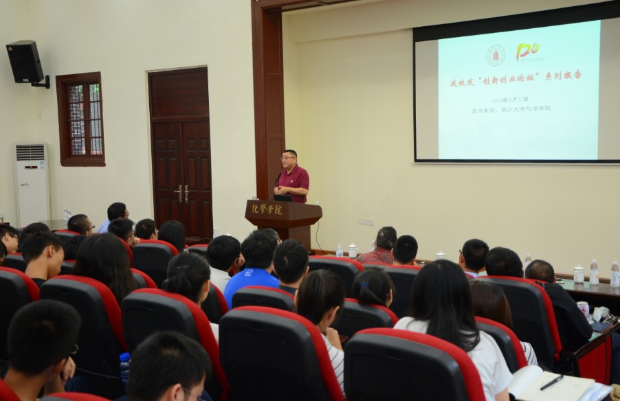 9月27日下午,作为四川大学化学学院庆祝120周年校庆的又一重要活动 “化学学院创新创业论坛”在化学馆321报告厅举行。此次论坛邀请到我们学院四位杰出校友来分享他们的创新创业经历,并与学子们进行深入的交流。