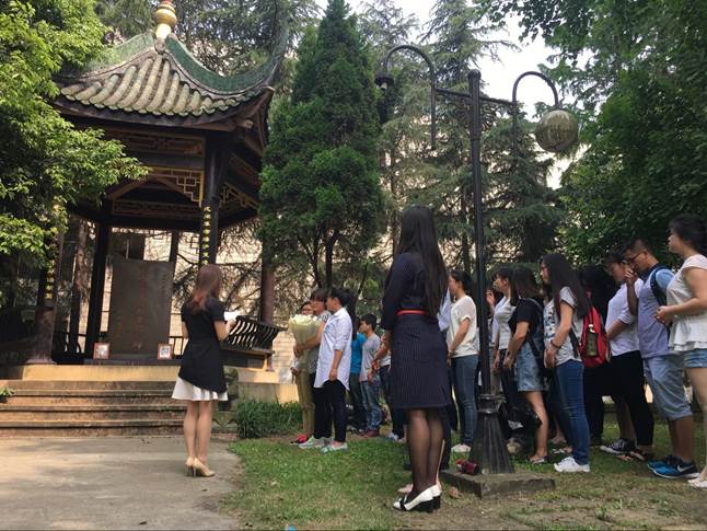怀着对革命先烈崇高的敬意,2016年5月4日,四川大学化学学院在望江校区革命烈士纪念碑举行纪念活动,缅怀革命先烈,开展爱国主义教育。参加此次纪念活动的有化学学院党委副书记谢均老师,化学学院团委书记来俏老师、化学学院12级辅导员肖波老师、13级辅导员杨琴老师以及部分学生党员代表。