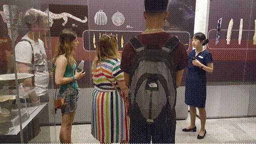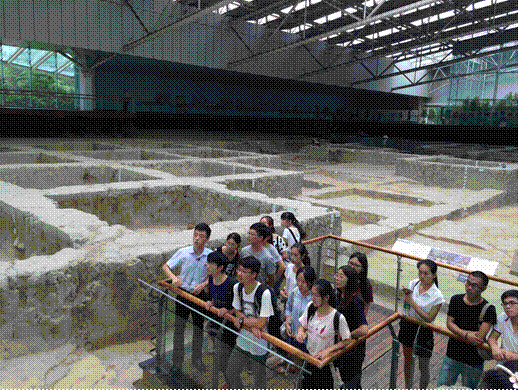 2016年7月4日上午9:00,化学学院参加国际交流营的26位同学与4位英国约克大学学生,赴位于成都市区的金沙遗址博物馆。途中,几位活泼热情的外国朋友用较流利的中文介绍了自己,一行人在欢歌笑语中来到目的地。