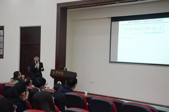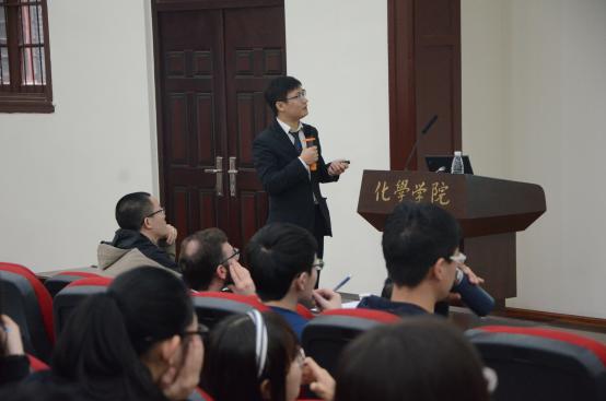 应四川大学化学学院邀请,新加坡国立大学吴杰老师于2016年04月08日访问四川大学并进行学术交流。在化学馆321会议室,吴杰老师做了题为“Continuous-Flow Synthesis as an Emerging Technology in CO2Utilization”的学术报告。他分享了该课题组多年来在连续流合成中利用二氧化碳的一种新兴技术的研究经验和方法,并介绍了近几年在该新兴技术方面的最新研究进展。我们学院院长余孝其教授主持了报告会,Jason J. Chruma、余达刚教授和学生到场听取了报告。此次报告内容新颖,讲解深入浅出,激起了在座老师和同学的浓厚兴趣。报告结束后,吴杰老师与学院部分师生进行了热烈的交流和讨论。