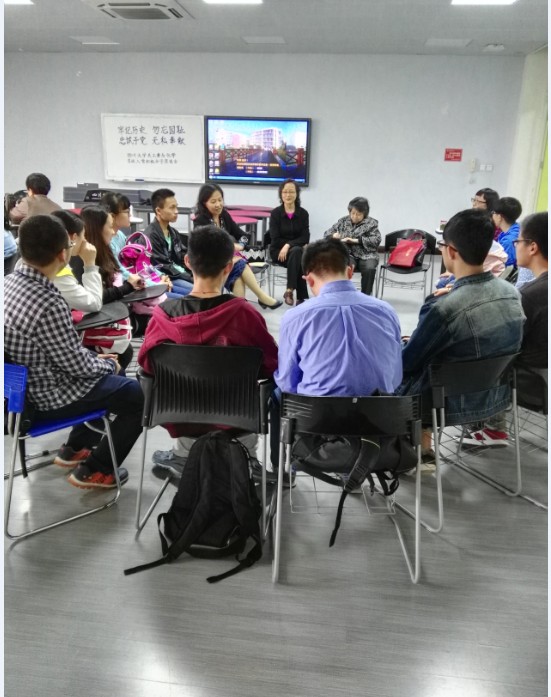 首先,四川大学教导员郭老师介绍了本次到场嘉宾。之后,曹素书部长就本次座谈会的意义和目的进行了讲解。其后,老师和同学们围成两个圈,近距离地交流互动。老师们再次进行了自我介绍,并讲了自己的求学、工作、入党经历。他们都是具有几十年党龄的“老”党员,入党时同现在的同学们年龄相仿,正值风华正茂。他们都曾在川大任教,担任辅导员等职务,在为学生服务中践行了自己入党申请书中庄严的承诺。虽然现在退休,仍致力于奉献而乐此不疲,在四川大学关工委担任教导员,专门为同学们排忧解难。
