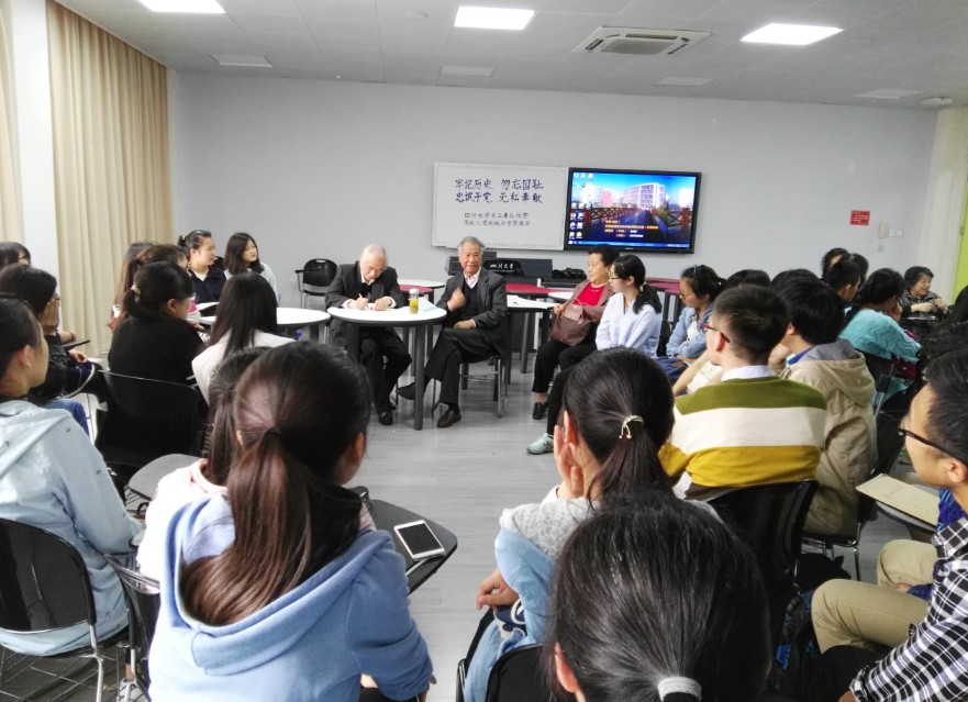 为了迎接中国共产党建党95周年、红军长征胜利80周年和四川大学建校120周年校庆,以及2017年的化学学院建院110周年院庆,2016年4月15日下午16:00,以“牢记历史,勿忘国耻;忠诚于党,无私奉献”为主题的四川大学关工委与化学学院15级入党积极分子座谈会在江安校区综合楼B座306教室成功举行。来自四川大学关工委(四川大学关心下一代工作委员会)素质教育活动指导部的曹养书部长、秦自明副部长、赵学琴副部长,以及李川娜老师、侯筑老师,四川大学教导员郭明秀老师,与化学学院15级有强烈积极入党意愿的同学们相聚在一起举行了座谈会,化学学院15级辅导员李珍焱老师主持了这次座谈会。