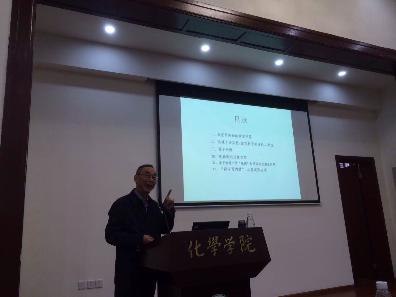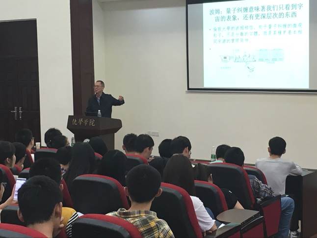2016年5月4日下午,应四川大学化学学院邀请,朱清时院士访问四川大学并进行了学术交流。下午16:30,在化学馆321报告厅,朱清时院士为化院师生带来了题为“浅谈量子纠缠”的学术报告。此次报告会由化学学院党委王智猛书记主持,化学学院党委谢均副书记、郑成斌教授等老师参加了此次报告会。