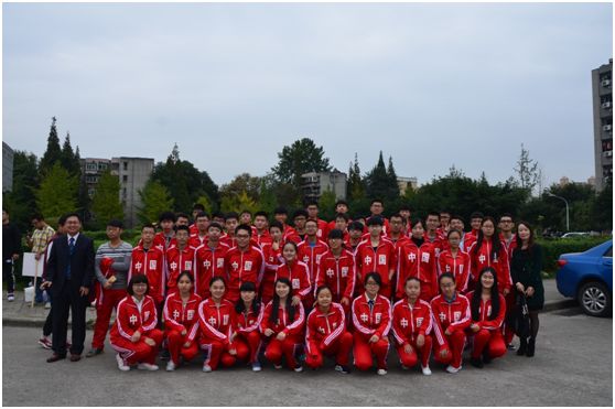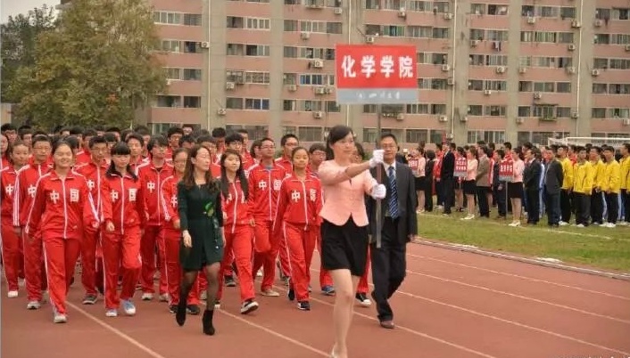 早上8:30,四川大学2015年秋季田径运动会开幕式正式开始,各学院的方队整装待发,等待检阅。看,化学学院的同学们昂首挺胸,迈着整齐的步伐上场了:“文武张驰,言行懿嘉,观我化院,绝代风华!”他们气势如虹,嘹亮的口号喊出了化学学院全体成员在运动会上一显身手的自信。他们身着火红的运动服,如火炬般以热情点燃了整个体育场。