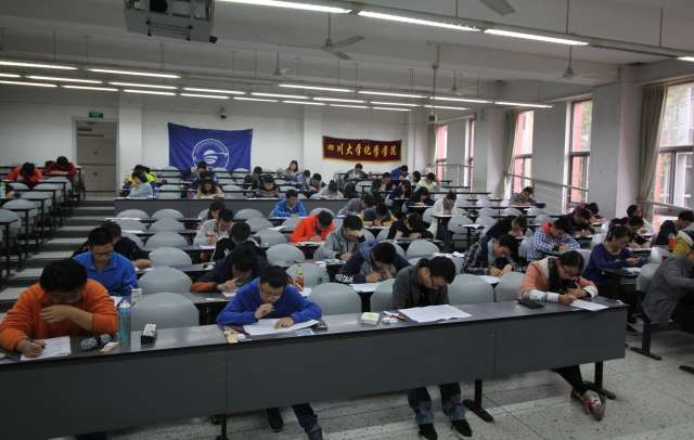 2015年11月21 日,由四川大学教务处、共青团四川大学委员会、四川大学化学学院主办的第一届四川大学“银杏杯”化学知识竞赛笔试初赛在江安校区第一教学楼B座顺利展开。本次竞赛初赛共设9个考场,共有来自27个学院600余名2015级同学参加。每个考场由一位监考老师以及两位志愿者负责维护考场秩序,四川大学化学学院余孝其院长、党委副书记谢均老师、初赛试题研究组负责人周歌老师参与了巡考的工作。