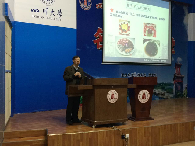 通过本次讲座,余孝其教授向大家普及了许多化学知识、化学在生活中的应用以及目前化学学院的概况,吸引了一大批喜爱化学的同学的关注,也为四川大学第二届“银杏杯”化学知识竞赛的顺利开展起了先导作用。