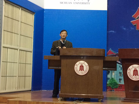 2015年11月21日上午8:00,在江安校区水上报告厅,四川大学化学学院院长余孝其教授为所有四川大学第二届“银杏杯”化学知识竞赛的参赛同学,带来了“化学是什么”的知识讲座。本次讲座由化学学院党委副书记谢均老师主持。