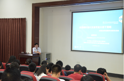 应四川大学化学学院邀请,长沙理工大学杨荣华教授于2015年06月11日访问四川大学并进行学术交流。在化学馆321报告厅,杨荣华教授做了题为“光学探针设计及信号放大若干策略”的学术报告。他介绍了该课题组近年来在光学探针的设计和信号放大等方面的研究进展。余孝其院长主持了报告会,李坤、周翠松、高戈、于珊珊、张骥等研究人员到场听取了报告。杨教授报告内容新颖,讲解深入浅出,激起了在座老师和同学的浓厚兴趣。报告结束后,杨教授与学院部分师生进行了交流和讨论。