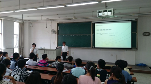 2013级辅导员杨琴简单介绍了岛津科技创新演讲比赛的概况后,马俪老师开始向同学们介绍本次比赛的规则与奖项设置,以及同学们参与到本次比赛之中的一些注意事项和项目主题。随后岛津(中国)技术开发本部、GC开发部部长大宫康二先生向同学们讲述了科技创新开发的流程,现代分析仪器的发展,并以一个气象色谱案例展示了真实开发过程中的种种问题。随后,岛津(中国)企划部经理夏晨老师就企划案、PPT的制作与同学们进行了交流。最后在答疑环节中,马俪老师详细地向大家说明了评分细则及文件提交注意事项。