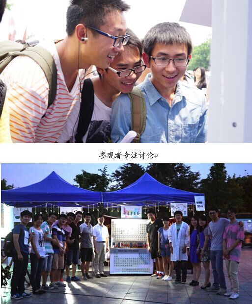 为丰富同学们的课余生活,展示化学这一学科的魅力,使更多的人更深入的了解化学元素方面的相关知识,让更多的同学体会到化学学科的博大精深,化学学院创意化学社“元素视界”活动于2015年5月18日在四川大学江安校区青春广场拉开序幕。