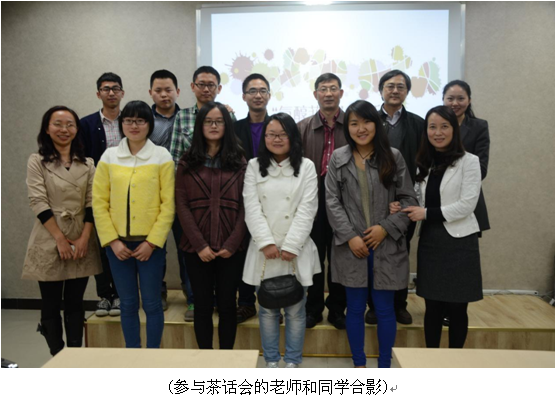 整个茶话会气氛轻松、其乐融融,师生们聊得非常投机,原定1小时的活动足足进行了近两个半小时。同学们纷纷表示,希望这样的活动能持续下去。会后,校团委林茂老师还简单介绍了我校学术型社团建设的现状和工作设想,对我们在社团工作方面有很大的启发。
