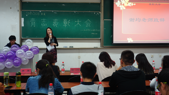2015年4月19日上午10:00,化学学院优秀青年志愿者表彰大会在四川大学江安校区第一教学楼B107顺利召开。化学学院党委副书记谢均老师、四川大学教导员郭明秀老师、团委书记来俏老师、2013级辅导员杨琴老师、化学学院主席团、各部门部长以及化学学院2014级全体志愿者参加了此次表彰大会。