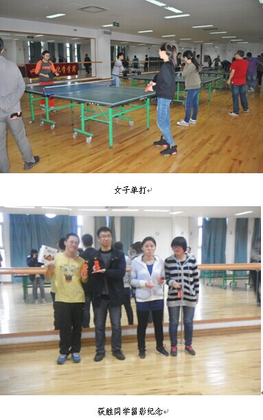 下午两点,比赛正式开始,选手们本着友谊第一,比赛第二的原则开始了乒乓球技的较量。比赛从一开始就进入了白热化阶段,选手们个个身手矫捷,动作迅速,令旁边的观众看得眼花缭乱,叫好声此起彼伏。经过激烈争夺,2013级吴思蒙同学夺得男单冠军,2014级魏欣煜同学夺得女单冠军,2013级吴思蒙、黎郭平同学夺得男双冠军,2013级开海露、李昕晢同学夺得女双冠军。比赛历经三个小时,选手们酣畅淋漓,以全部热情精力完成了比赛,给我们带来了高质量的乒乓球视觉盛宴。