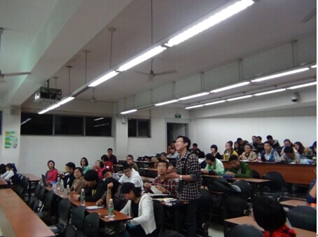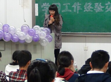 有趣的抽奖环节后,商睿同学向新生们介绍了有关保研过程中的注意事项,使同学们更加清楚地认识到了保研的具体情况和意义。最后登场的是拔尖班排名第一的邢秀京同学,她为同学们重点介绍了大家所渴望但却陌生的出国,讲解了出国留学过程中要注意的细节,告诉了同学们出国的准备,并告诫同学们要去收集大量的信息来明确自己的行动。