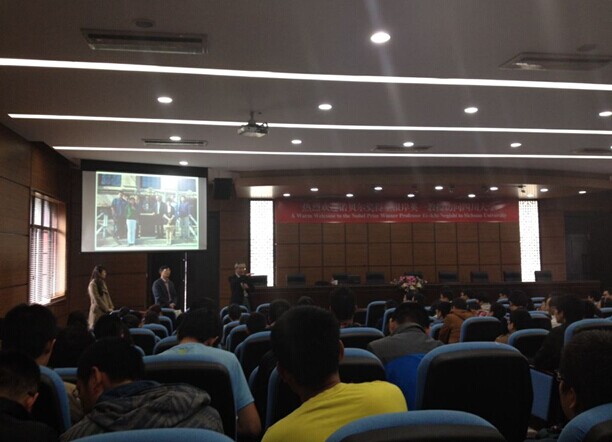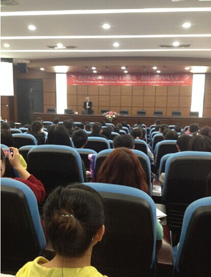 2014年10月28日上午10:00,2010年诺贝尔化学奖得主日本科学家根岸英一(Ei-ichi Negishi)教授应四川大学邀请,在行政楼414会议室为川大师生带来了“以钯催化的偶联反应与锆催化的烯烃不对称碳铝化反应为例阐述D区过度金属催化的魔力”学术讲座。讲座由四川大学化学学院院长余孝其教授主持。