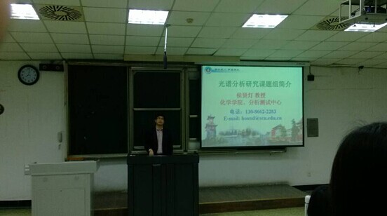 2014年10月29日早上8:00,在四川大学望江校区基础教学楼A座101,化学学院侯贤灯教授在“现代化学专题讲座”课程上为我们带来一场精彩的讲座——光谱分析课题组简介。