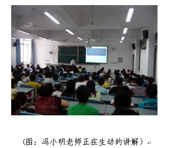 2014年9月10日上午九点半,在四川大学江安校区综合楼C205教室,冯小明院士为化学学院2104级新生开展的题为“化学的今天与明天”讲座成功举办。化学学院党委副书记谢均老师、四川大学教导员郭明秀老师、化学学院2013级辅导员杨琴老师、化学学院2014级辅导员张愉老师以及化学学院2014级全体新生同学参加了此次讲座。