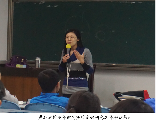 2014年10月14日晚19:30,四川大学化学学院创新思维与交流系列讲座第三讲在江安校区综合楼C座307教室开讲。四川大学教授、博士生导师卢志云老师为化学学院2014级全体学生带来了一场精彩的“有机光电功能材料”讲座。卢志云教授科研工作集中在具有光电性能的有机功能材料的设计合成以及性能的研究工作,近年来主要进行氢键自组装光电功能材料,包括超分子聚合物电致荧光、电致磷光材料和太阳能电池材料等的设计开发及分子结构性能关系的研究工作。