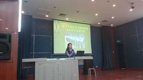 2014年6月22日上午10:30,四川大学化学学院2013级学生军训动员大会在二基楼报告厅成功举行,化学学院党委副书记谢均老师,2013级辅导员杨琴老师以及全体2013级学生参与了此次动员大会。