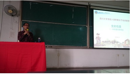 2014年4月13日上午10:00,四川大学化学学院第136期“入党积极分子培训班”开学典礼在江安校区一教B407隆重举行,有四川大学党校常务副校长范嗣云老师、四川大学化学学院党委书记王智猛老师、四川大学党委副书记谢均老师、化学学院2013级辅导员杨琴老师以及本次“入党积极分子培训班”学员参加了此次开学典礼。