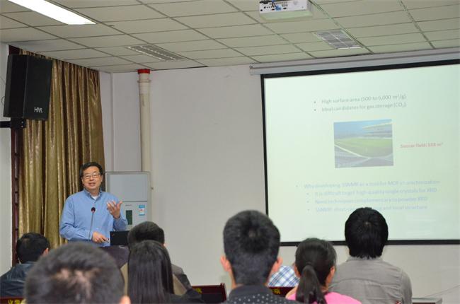 应四川大学化学学院邀请,加拿大西安大略大学化学系黄忆宁教授于2014年5月15日访问四川大学并进行学术交流。在化学馆121报告厅,黄忆宁教授做了题为“Solid-state NMR characterization of metal-organic frameworks at ultrahigh magnetic field”的学术报告。他介绍了该课题组近几年利用固态核磁表征并研究多种金属有机骨架方面的最新研究进展。余孝其院长主持了报告会,林之恩、陶国宏、曾红梅、向海峰等研究人员到场听取了报告。黄教授报告内容新颖,讲解深入浅出,激起了在座老师和同学的浓厚兴趣。报告结束后,黄教授与学院部分师生进行了交流和讨论。