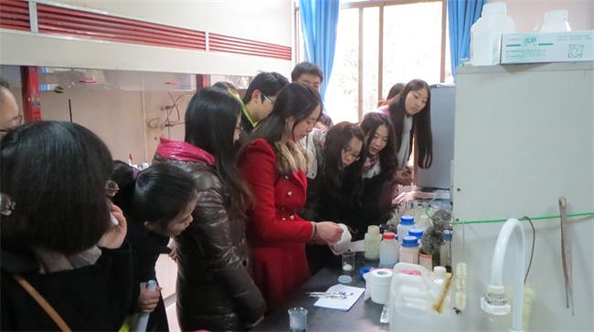 为积极响应“学科交叉交流,学术魅力共享”的号召,旨在拓宽同学们的视野,促进不同学科间的学术交流,化学学院研究生分会于2013年12月20日下午在第一理科楼成功举办了“揭开神秘面纱之走进化学”活动。本次活动邀请了阻燃与降解高分子协会会长和三年级博士研究生为大家做讲解,来自外国语学院、文学与新闻学院、经济学院、生命科学学院、公共管理学院和计算机学院等6个学院的23名研究生同学参加了此次体验活动。
