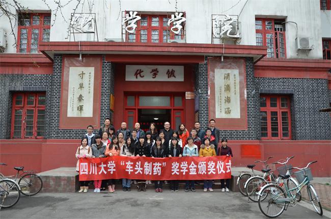2014年3月21日上午10:30,由化学学院承办“车头制药”颁奖仪式在四川大学望江校区化学馆122隆重举行。参加此次颁奖嘉宾有浙江车头制药有限公司副总经理徐建江先生、人力资源与行政部部长宣如彬先生、行政部蒋志永部长、化学学院党委副书记谢均老师、化工学院党委副书记李天友老师、就业与校友联络科科长杜晓燕老师、化学学院团委书记兼学生科科长来俏老师、化工学院学生科科长卿培亮老师、华西药学院学生科长章程老师以及化学学院各年级辅导员。