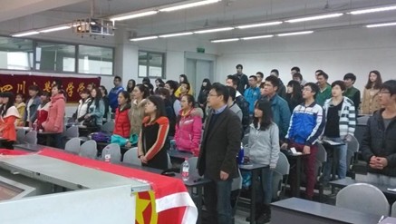 2014年3月21日下午2点30,四川大学化学学院2014年团校第四次行课在江安校区第一教学楼B405成功举办。本次行课由化学学院党委书记王智猛老师主讲。同时,2013级辅导员杨琴老师、化学学院全体2013级学生会成员、班委以及寝室长参加了本次行课。随着集体合唱团歌的结束,本次行课正式开始。