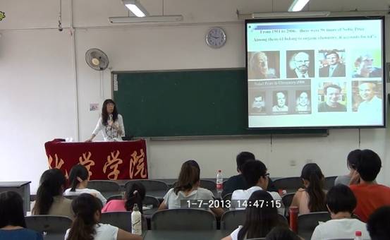 2013年7月1日下午14:30,化学学院罗娟老师在江安校区第一基础教学楼C座202教室作了题为“有机化学与医学的关系”的全英语授课。化学学院2011辅导员李珍焱老师、3位来自美国的交流学生以及我院“2013国际及实践课程周交流营”全体同学参加了此次课程。
