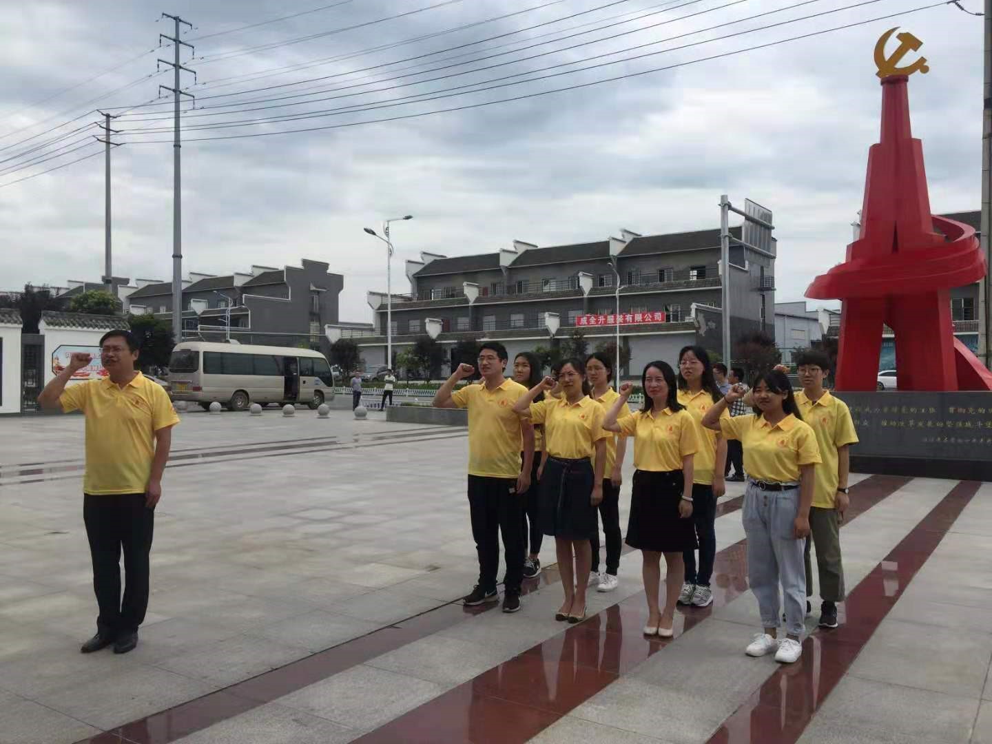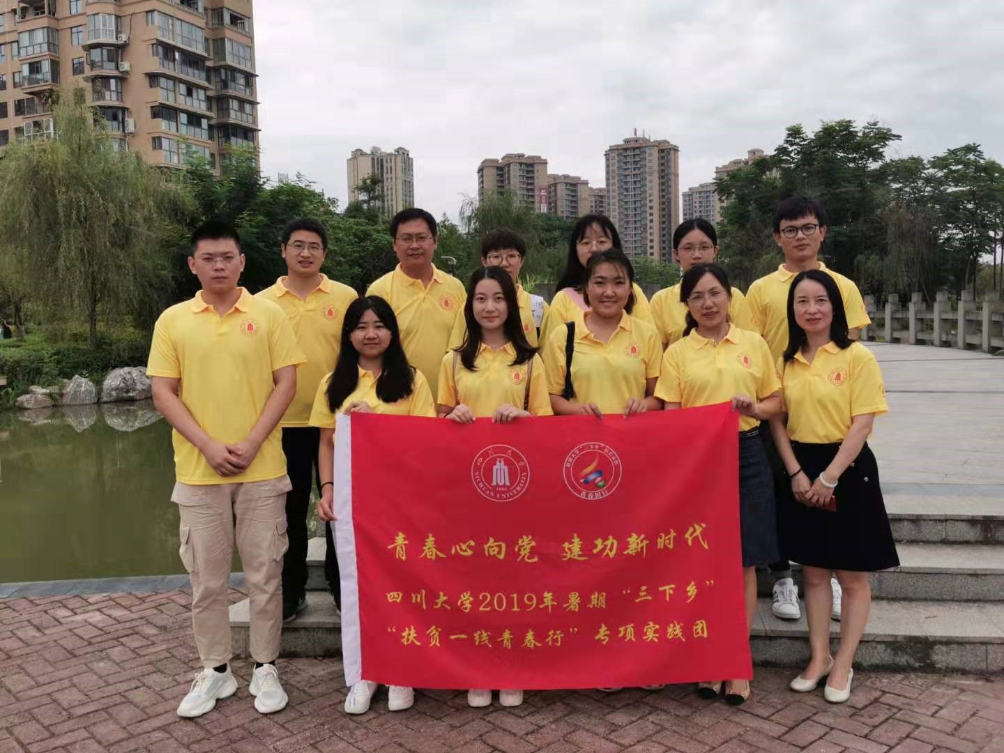 第二天上午,实践团首先沿余家河公园调研城市建设,了解岳池县近几年在城市基础设施建设、城市治理等方面取得的重大成就。接着到健康岳池规划体验馆,实地感受岳池县的医药产业发展。最后还前往党建红塔馆,学习了岳池县的红色历史和党建文化。实践团全体党员在红塔馆门口进行了入党宣誓,表明了自己始终拥护党、忠于党的决心。下午,县脱贫办召开了座谈会,县委副书记何琪介绍了岳池扶贫工作的开展状况以及自己从川大来到岳池挂职工作以后的所思所想,四位优秀的村支部“第一书记”李江、宋飞、胡陶、冯鸟东向大家分享了驻村工作的心得体会。实践团师生与村干部们进行了深度交流和互动,并向参加座谈会的驻村干部赠与了口腔保健用品。