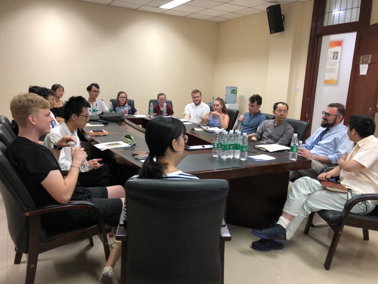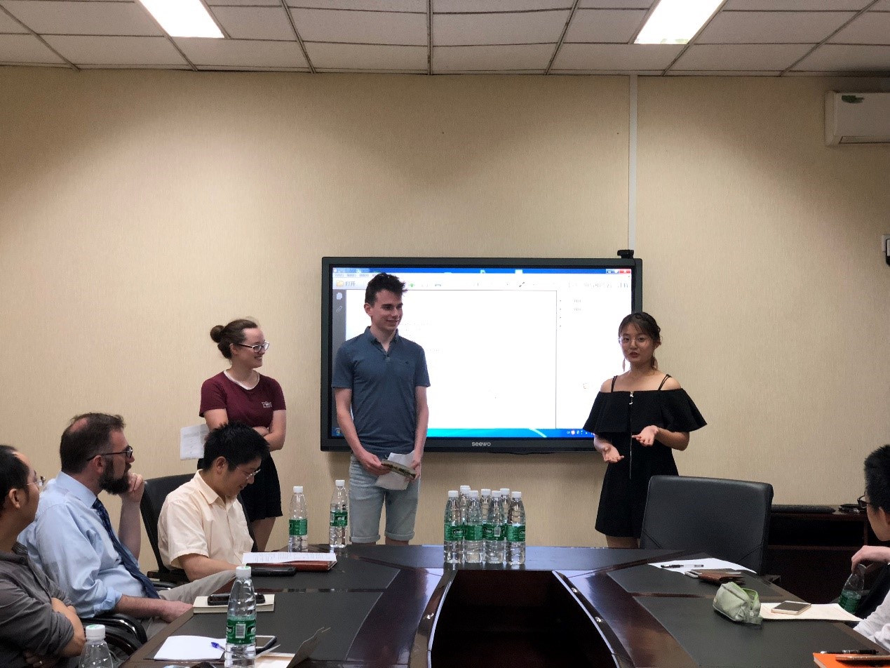 7月12日早上10点,化学学院2019年UIP国际交流营学生科研成果汇报暨闭营仪式在化学馆103会议室举办,12名交流营成员分组汇报为期一周的实验室工作。化学学院全职外教Jason Chruma教授主持了此次汇报会,三位实验指导教师余志鹏教授、杨千帆副教授、宾正杨副教授及学院外事秘书马晓爽老师参加了汇报会。